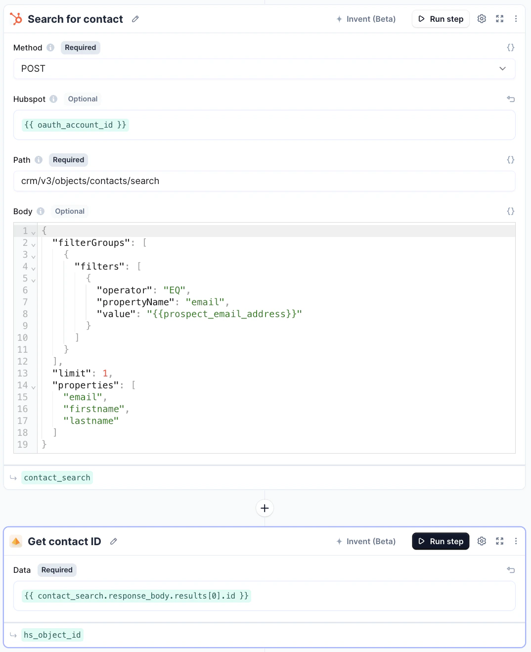 Besides triggering your agent to start working from HubSpot, you can also use the HubSpot API call step in the Tool builder. This tool step allows your agent to complete HubSpot-specific activities, like managing Contacts, Notes, Tasks and more.Use HubSpot API tool-step